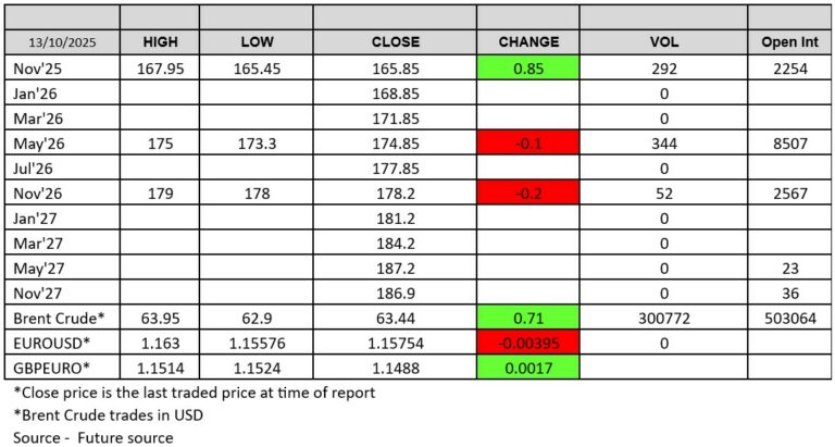 A somewhat directionless start to the week today as global wheat was unable to decide on which way it should head. London front month looked to end the day marginally higher, stuck between the ongoing £165-£167 price range. Matif wheat saw slimmer volumes once again following Chicago wheat fractionally lower. A stronger dollar was clearly not enough to bolster the EUR-denominated French wheat contract.