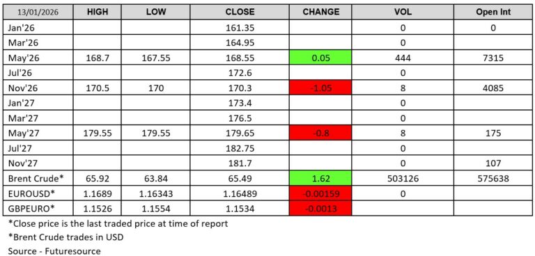 A quiet start to the week as the US holiday for Martin Luther King Jr. day had its usual knock-on effect to the European markets. Volumes were sluggish on both Matif and London. London saw less than 100 lots cross the line across the curve.