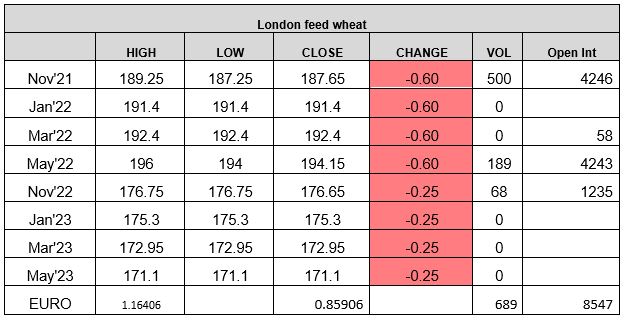 Adding to the bumper Aussie wheat harvest, ABARES has also forecast the canola crop to hit a record smashing 5Mmt, a 20% increase from June’s estimate. With Canada’s crop suffering from prolongued drought, the Aussie crop will have the opportunity to filter into new markets. Matif Nov-21 rapeseed found remained bullish, settling €3/t up on yesterday at €576.75.