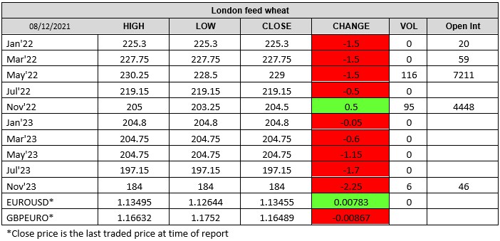 Wheat markets remained rather subdued in today’s trading, both in the US and Europe, unsurprising and quite normal prior to a USDA report day. Trade is waiting for an update on Australia’s harvest, with hopes that a drier spell in the coming week will avert further quality damage. FranceAgriMer lowered its forecast of French soft wheat exports outside of the EU for a second month in a row – cutting the 2021/22 season down to 9.2Mmt from 9.4Mmt estimated in November. It has also increased French soft wheat ending stocks by the end of the 2021/22 season in June next year to 3.5Mmt, up from 3.2Mm estimated last month. On the international front, Australia and the UK have joined the diplomatic boycott of the Beijing Winter Olympics, very frosty indeed. Russian wheat values continue to climb, will we hit the $90/t export tax next year? Reports appearing on Refinitive of favourable weather conditions in Russia with 2022/23 wheat production projected at 87.3Mmt. Still early days. Biden and Putin’s chat didn’t obtain anything concrete, talks are supposedly set to continue. Actual invasion theory seems unlikely by many but Ukraine are worried about a potential internal strife. Remember those little green men in Crimea in 2014? Trade doesn’t see any major threat of grain boats being taken out by the Black Sea fleet. Will be interesting to see what materialises going forward. Matif Mar-22 settled down €4.75 on yesterday at €287, settling down 10 of the last 12 sessions.