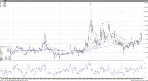Nearby Monthly Chicago wheat futures chart