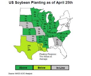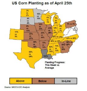 Corn futures were mixed. CK ended near 6.95. Range was 6.80-7.20. CN ended near 6.54. Range was 6.46-6.84. CZ ended near 5.62. Range was 5.52-5.93. Some feel highs were made by margin call buying and weak shorts finally liquidating before May deliveries. Longs may have also rolled from the May to July. Some feel that market needed to correct an overbought technical picture. Argentina corn export basis is near -5 CK. US corn export basis is near +70 CK. This could restrict new US corn sales. Trade continues to talk about lower Brazil corn crop and below 100 mmt vs USDA 109 guess. Some could see final Brazil 221 corn exports down 400 mil bu from USDA estimate. 17 oct of US 2021 corn crop is planted vs 20 average. Talk of Midwest rains over the next few days and more rain mid-week next week may have also offered resistance to new crop futures. Still most forecasters look for a drier than normal US Midwest summer which suggest top in market has yet to be scored. ADM CEO suggested final US 2021 corn and soybean acres could be 5 mil bu higher than USDA March estimate. Most of this could be out of last year prevent plant acres and in US NW states. Matif corn futures made new highs. Concern about Europe 2021 weather supportive. There was also talk that south China stocks may be tight.