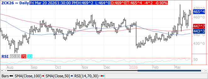 It was a gut check day for corn bulls as nearby futures closed into new lows for the week.  Overall prices were $.05-$.08 lower.  Nearby spreads actually firmed while back months weakened.  The higher US $$, lower energy prices along with forecasts for widespread rains in Argentina over the next 2 weeks weighed on commodity valuations.  Exports at 57 mil. bu. were in line with expectations.  YTD commitments at 1.885 bil. are up 29% from YA, vs. the USDA forecast of up 7%.  Current commitments represent 77% of the USDA forecast, above the historical average of 69%.  Noted buyers were Mexico – 22 mil., and Japan – 18 mil.  Still no slowdown in sales to Mexico with tariffs on hold for now.  The BAGE reports corn ratings improved 3% to 19% G/E, while poor/VP fell 3% to 30%.  Production was left unchanged at 49 mmt.  CoBank is forecasting 2025 US corn acres will increase 3.9 mil. over YA to 94.5 mil. and pretty much in line with acres in 2023.  The USDA annual Outlook Forum late next week will release an early look at the US acreage mix along with long-term supply and demand forecasts.  The Outlook Forum has overestimated US corn stocks the last 5 years, and 8 of the past 11.  COF as of Feb. 1st at 99% of YA was in line with expectations.  Placements at 102% were also in line, while marketings at 101% were slightly below the Ave. trade guess at 102%.