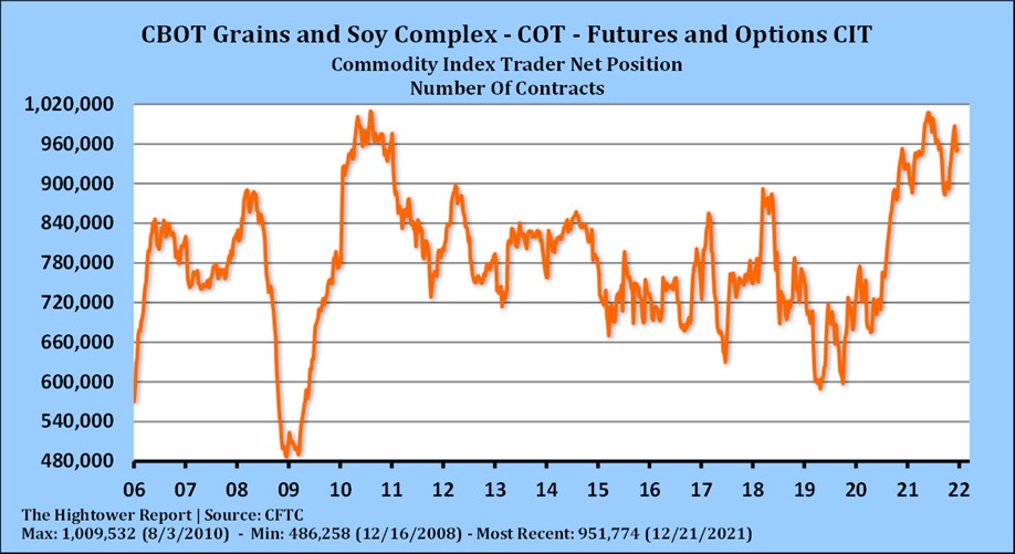 Soybeans and soymeal traded higher the first day of 2022. Concern about the Argentina crop conditions added to new buying. There was also talk that one trading house lowered their estimate of the Brazil soybean crop 11 mmt to 134.0. Soybean futures started higher after South Brazil and Argentina weekend rains were less than expected. Low weekly exports may have triggered new selling. Weekly US exports were 43 mil bu vs 63 last week and 65 last year. Season to date exports were 1,113 mil bu vs 1,441 last year. USDA goal is 2,050 vs 2,265 ly. Fact some are lowering Brazil soybean crop 10-11 mmt could raise US exports. Lower SA soybean supply could result in 100/150 more US soybean exports. Recent SH high was 13.84. SMH 415. BOH 57.80. Lower SA supplies could test resistance.