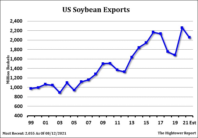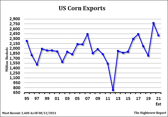 Corn futures traded higher on concern that US crop could be stressed if the next 2-3 weeks are warmer and drier over parts of the US upper Midwest and north plains. 27 pct of US corn acres are under severe drought. 10 pct of US corn acres are in ND/SD. One SD farmer said today, farmers there are haying winter Wheat crop and could lose their spring crops if rains do not fall soon. One weather watcher today said he feels long range US weather maps look now like 2012. Today, Informa est US 2021 corn crop near 360 mmt vs 345 last year. They also est US 2021 corn crop at 406. Brazil 2021 corn crop is est down to 88 mmt vs 103 last year. They also est 2022 crop at 119. Argentina 2021 corn crop is est near 47 mmt vs 51 last year. They also est 2022 crop at 53. Average traded guess for US 2020/21 corn carryout is 1,203 mil bu vs USDA 1,257 and 2021/22 carryout near 1,417 vs USDA 1,507. Most feel final 20/21 carryout could be closer to 1,100 and 21/22 1,200 with a normal crop!! There is also strong indication that China could take more US corn in 2021/22 than this year. US corn export commit is near 2,721 mil bu vs 1,593 ly. China unshipped open sales are near 330 mil bu. New US corn crop sales are near record 593 mil bu.