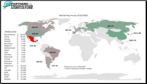 Soybean traded higher. Talk of lower Argentina supply and higher US domestic soybean basis offset lower China crush margins and soymeal prices and talk of higher Brazil crop. Some feel that there is good US domestic soymeal demand at current prices. Higher palmoil prices and talk of higher US demand for soyoil biodiesel helps soyoil futures. Weekly US soybean sales were near 350 mt. Total commit is near 60.4 mmt vs 34.2 ly. USDA goal is 61.2 vs 45.7 ly. China commit is near 35.8 mmt with 2.2 in unknown. Conab est Brazil soybean crop at 135.1 mmt vs 133.8 previous and USDA 134. Trade survey est the crop closer to 131.7. Some est Argentina soybean crop near 44 mmt vs USDA 47.5. USDA est World soybean trade near 169.6 mmt vs 165.0 ly. Brazil 85.0 vs 92.1 US 61.2 vs 45.7.