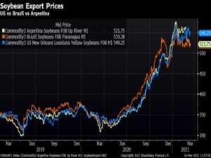 Corn continued to trade highs and closer to the upper end of the recent trading rang. Nearby futures continues to be supported by higher domestic basis as exporters, ethanol plant and animal feeders al bid for what is left of the 2020 US corn crop. Higher than expected weekly US corn exports are also supportive. Weekly US ethanol production is expected to be up slightly from last week as plants recover from the week of record cold temps. Stocks should be down slightly. Margins have improved and many look for increase demand once more Americans are vaccinated and return to traveling and get back to work in offices. US and China will meet on Thursday in Alaska. USDA announced China bought 1,156 mt US corn. Most look for China to agree to buy US goods under Phase 2 agreement in return US would drop or reduce the 35 pct tariff on China imported goods. New sales to China announced today is also supportive. Still talk that South America crops may not be as low as feared and improved Brazil planting and Argentina growing weather plus approaching US spring planting season offers resistance. Can funds hold on to longs if US spring planting weather is favorable? US March 31 estimate of US 2021 corn acres and March 1 stocks could be key to prices.