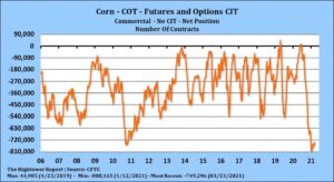 Corn futures traded lower. Managed funds continued to reduce their net long before USDA acreage and stocks report. Last year, USDA March guess for acres were near 97.0 with final acres near 90.8. Wet spring increase prevent plant acres especially in NW. 97.0 million acres could reflect farmer good cash position and willingness to increase acres to increase potential income. Last year, US net farm income was up but mostly due to Covid payments. Payments this year could be less. Trade estimates US 2021 corn acres near 93.2 with a range of 92.0-94.5. There is also some fear that USDA could find bushels on their March 1 stocks. Over last 16 years, stocks have been above trade guess 10 times an average of 137 mil bu and below 6 years 141 mil bu. Key could be quarterly feed and residual. Most est feed 1,345 mil bu. recent range has been 1,191-1,528. FSI is est near 1,514 vs 1,712 ly and exports 670 vs 355 ly. Weekly US corn exports were near 66 mil bu. Some look for exports to average 69 per week with final exports near 3,000 mil bu versus USDA guess of 2,600. Season to date exports are 613 mil bu above ly versus USDA guess a 772 increase. Brazil corn crop is 98 pct planted. Weather remain dry.