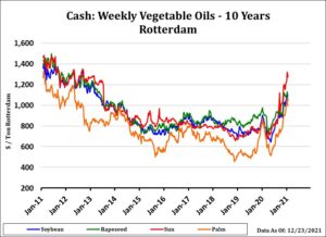 Soybeans traded a wide range. Soybean futures rallied after the weekly US soybean export sales report on talk of increase China buying Brazil soybeans. Tuesdays rally was linked in part to China pricing Brazil shipments. China soybean futures continue to score new highs. China Soyoil and Malaysian palmoil futures are also making new highs. Talk Biden may increase soyoil use for jet fuel may have also triggered new soyoil futures buying. One commercial US crusher reported increase crush capacity for increase soyoil use. Weekly US soybean sales were near 334 mt. Total commit is near 60.1 mmt vs 34.0 last year. China shipments are near 34.4 mmt with 35.7 mmt total commit and there is 2.3 mmt in unknown. USDA US soybean export goal is 61.2 mmt vs 45.7 last year.