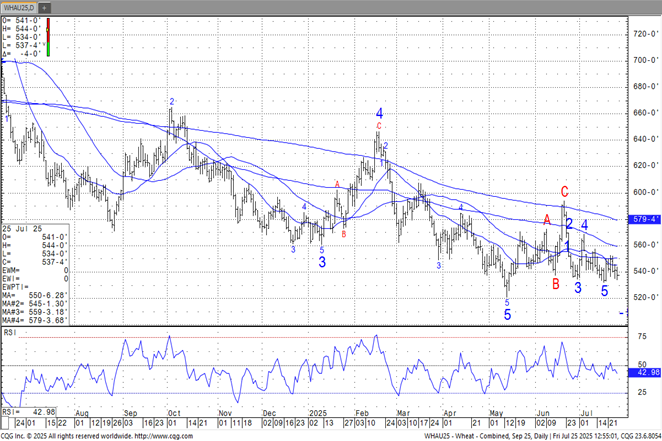 The soybean complex was mixed today in choppy 2 sided trade with beans closing down $.01-$.02, meal was $1-$2 higher while oil was up 10-20. Nov-24 beans have near term support at LW’s low at $9.95 ¾ with resistance at its 50 day MA at $10.17 ¾. After making a new 4 week low, Oct-24 oil recovered to close just below $.40 lb. Inside day for Oct-24 meal with support at $313.30. Spot board crush margins rebounded $.08 today to $1.37 with bean oil PV holding at 38.3%. NOPA crush in Aug-24 at only 158 mil. bu. was well below the average trade guess of 171.3 mil. and below the range of est. of 162-178 mil. This compares to 182.9 mil. in July and 161.45 mil. bu. in Aug-23. NOPA results would suggest census crush at 167 mil. bu. coming up roughly 8 mil. shy of the revised USDA forecast of 2.295 bil. bu. for the 23/24 MY. Bean oil stocks fell to 1.138 bil. lbs. down from 1.499 bil. in July and also well below expectations and the range of est. at 1.245 – 1.444 bil. Several chances for rain in Southern Brazil over the next 7-10 days. These rains are expected to gradually push north into Sao Paulo and Southern MGDS. Mato Grosso is expected to remain hot/dry for another few weeks with better rain prospects in late Sept. and early Oct. The USDA announced the sale of 132k mt (4.8 mil. bu.) of soybeans to an unknown buyer. Export inspections at 15 mil. bu. were at the low end of expectations and well below the 33.5 mil. bu. needed per week to reach the USDA forecast of 1.850 bil. bu. YTD inspections at 25 mil. are down 16% from YA vs. the USDA forecast of up 9%. There were no shipments to China. Last week MM’s bought 23.5k contracts of beans reducing their short position to 131k and bought 14k meal extending their long position to 37k. Stats Canada cut their canola production est. 2.7% from August to 18.98 mmt, now below YA production of 19.2 mmt.