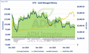 • Gold futures have experienced a severe correction since mid-March, with the nearby contract falling from $5,039 to $4,823, a decline of roughly 4.3%. However, the intra-period range was more volatile. Gold plunged from a $5,082 on March 16 to a low of $4,128 on March 23, a 18.7% drop, before recovering nearly half the move by April 15.