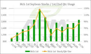 • First-quarter Asian grind came in at 225,503 metric tons, up 5.2% from the first quarter of 2025. Prior to the report, the trade had been looking for a decline.