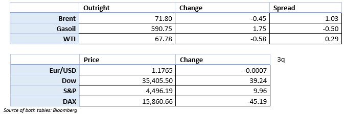 • On the more positive side, US driving season continues in earnest despite Covid cases rising, China claims to have subdued the delta variant outbreak and opening up the economy again whilst draws in the US stocks yesterday provided further bullishness