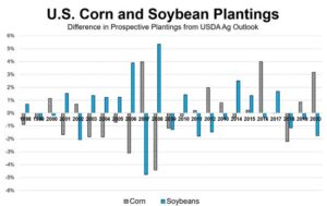 Wire story reported the upcoming U.S. corn and soybean planting season has shaped up to be among the most highly anticipated ones in history due to unusually tight stockpiles and elevated prices. Last week, the U.S. Department of Agriculture tentatively slated 2021 corn and soybean plantings at 92 million and 90 million acres, respectively, primarily based on economic analysis. That was slightly fewer corn acres and more soy acres than the market expected, though both would be up on the year.
