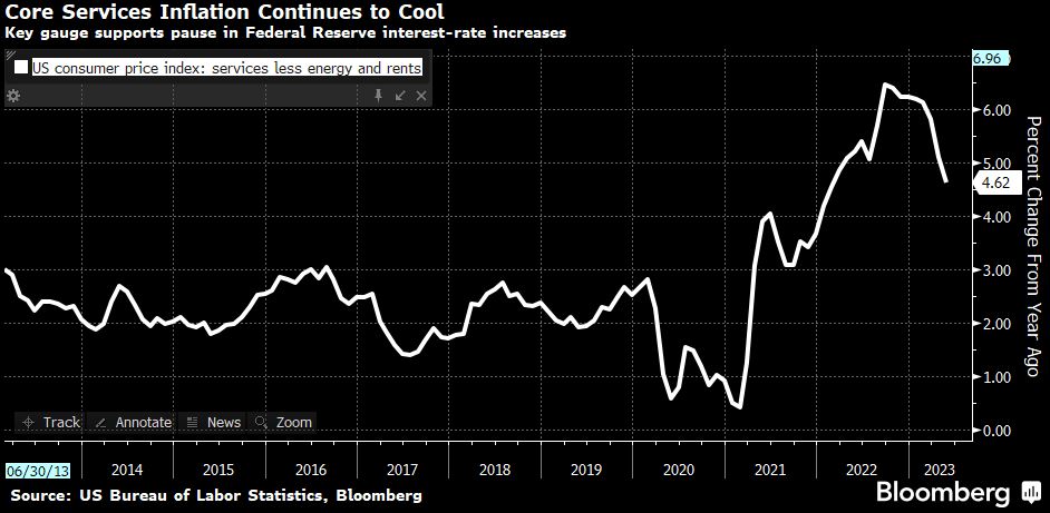 Yesterday’s CPI was mixed with headline a tad below forecasts at 4.0% y/y, while core CPI slipped slightly less than expected to 5.3% y/y, though the core Services ex-Housing sub-index encouragingly dropped to 4.6% y/y, with higher than expected OER (housing) and a sharp jump in Used Auto Prices accounting for much of the headline core CPI pressure. That outcome should be sufficient for the Fed to justify a widely discounted decision to keep rates unchanged (at 5.00/5.25%) for the first time since the Fed started hiking rates in March 2022. Nevertheless, the latest ‘dot plot’ and Powell’s press conference are expected to hint at a July rate hike. The committee’s forecasts are also likely to see marginal upward revisions to growth and inflation forecasts, and a downward revision to Unemployment. Watch out for potential for some dissent on the rate vote, with both Bowman and Kashkari recently suggesting that the case for a pause had as yet not been made. While markets have back reversed much of the rate pivot that had been anticipated in April, and continue to anticipate the risk of rate hike in July (see chart), but still look for a rate cut by year end. What Powell and the FOMC will wish to avoid is markets ‘misinterpreting a pause’ as a pivot signal, and this will be their biggest challenge. It could if it chooses lean on the second policy target, namely Employment, emphasizing that labour demand remains very robust, and the economy relatively resilient, and that this continues to pose an upside risk on inflation going forward, and rules out a pivot well into next year, though this would leave it hostage to fortune, in a which ‘data dependent’ does not. PPI is likely to underscore the already evident diminishing pipeline pressures, with headline expected to fall to 1.5% y/y from 2.3%, and ex-Food, Energy & Trade to 3.0% y/y from 3.4%.Market Fed rate expectations evolution