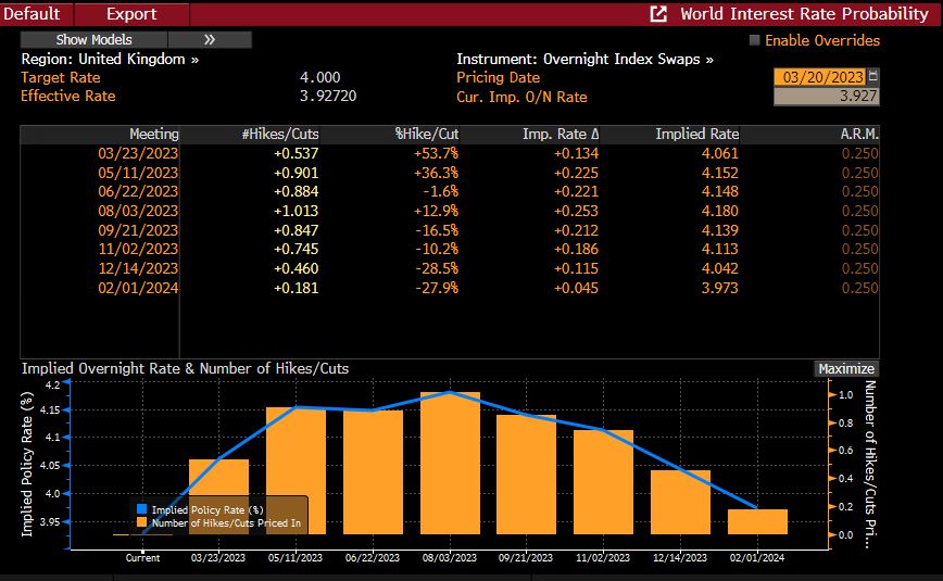 While the Fed is obviously wary of contagion risks, it still views the banking sector as being well capitalised, and it will want to stress that the inflation battle is not won, and it remains too high, so a 25 bps hike seems very likely, though like the ECB it will likely stress a high level of uncertainty, and offer no guidance, and emphasize data and financial conditions dependency. The ‘dot plot’ will probably shift a little higher in terms of peak (5.375% from 5.125%), with growth and inflation forecasts edged up, and unemployment edged down. Powell will likely underline high vigilance on financial conditions, but also inflation still being too high, growth holding up relatively well and the labour market remaining very tight, and an obviously difficult balancing act on financial stability vs. fighting inflation. He will doubtless face a lot of questions about banking sector risks, whether the Fed and other regulators have been asleep at the wheel in terms of balance sheet risks and accounting practices, and the significance of last week’s jump in Discount Window borrowings. He will also be at pains to point out that the BFTB programme is not QE, as it is based on loans on collateral, and not outright purchases of securities.